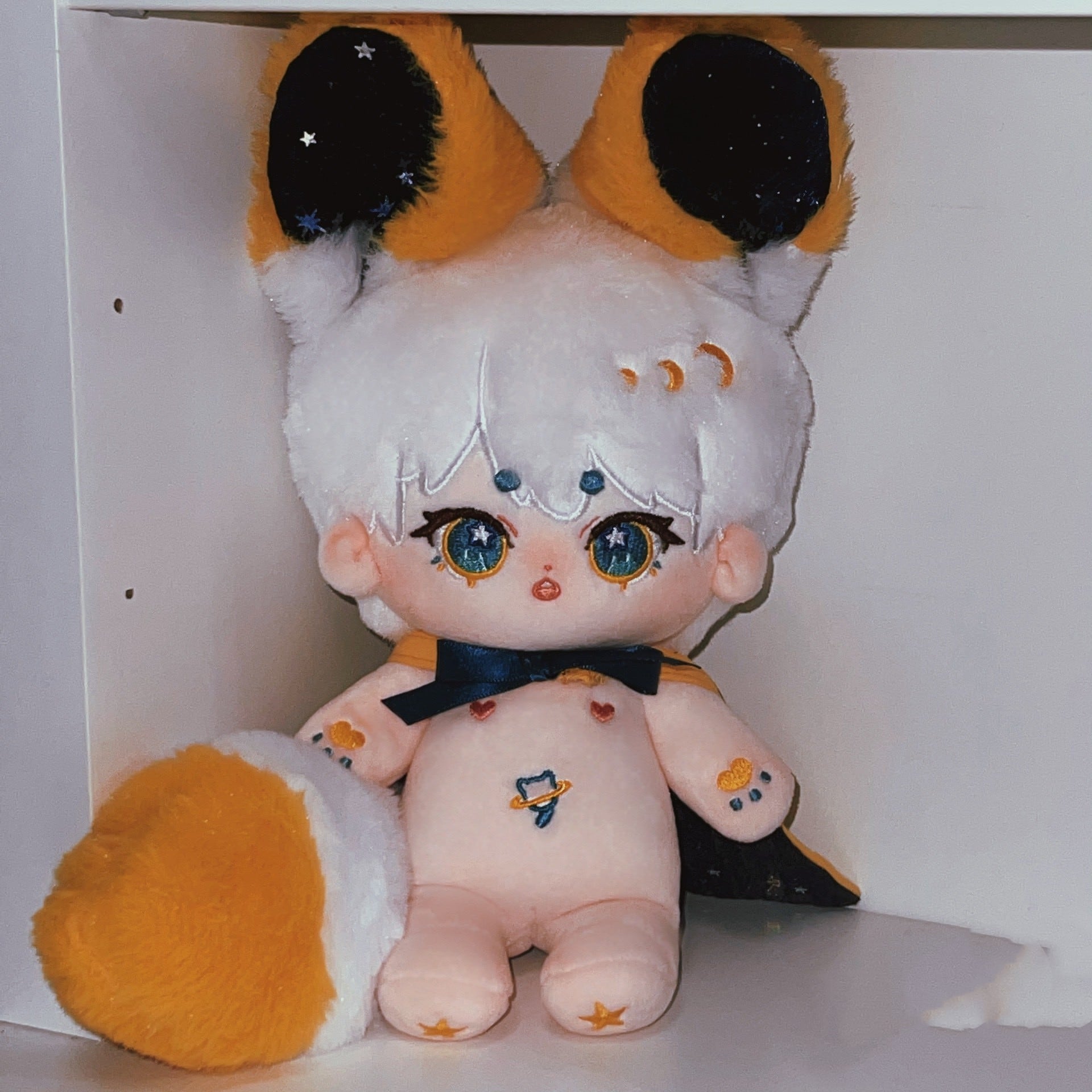 20cm 着せ替えぬいぐるみ 無属性 着せ替え人形 コットンドール 綿人形 白髪のスターアイズ獣耳付け男の子 星渺 cotton doll