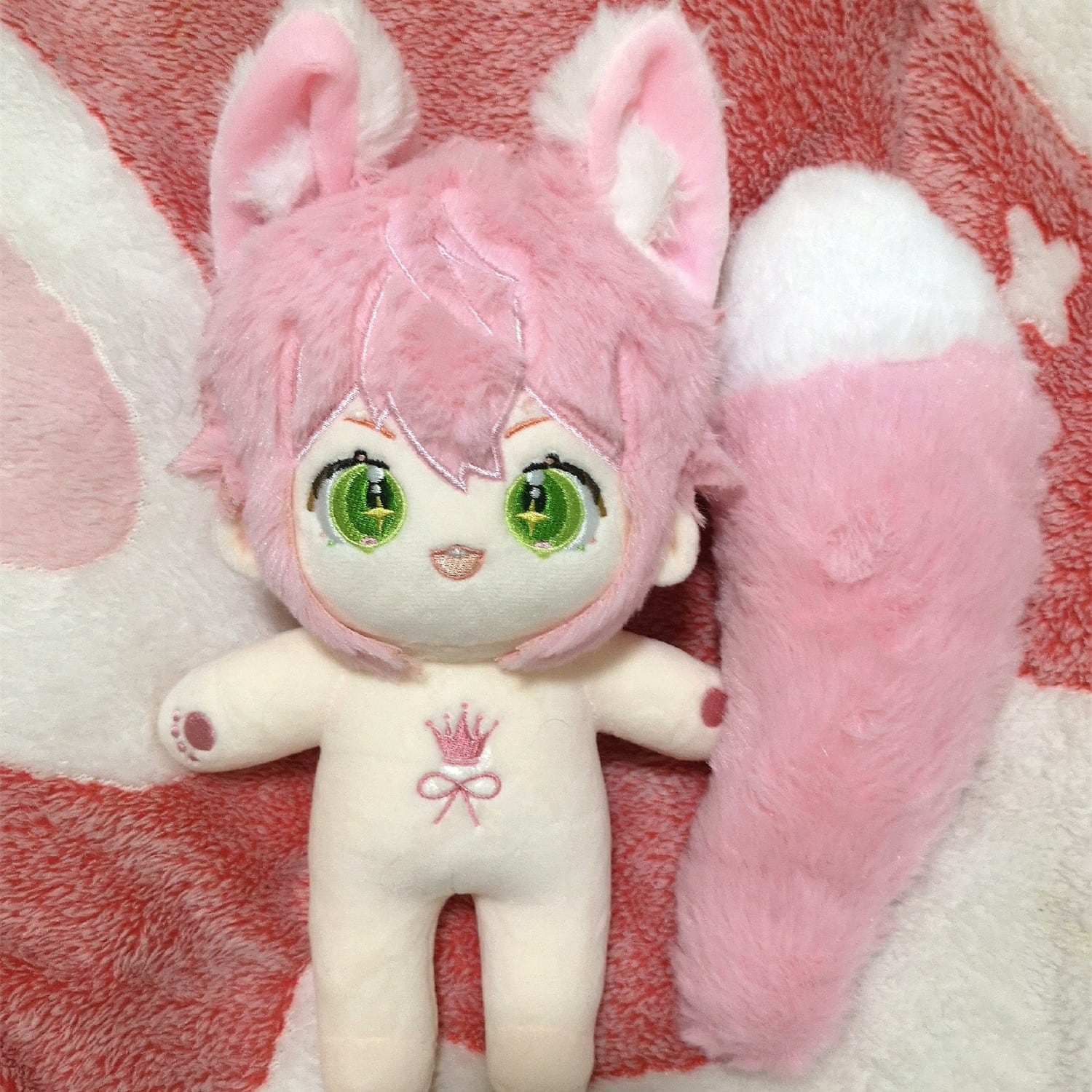 20cm 着せ替えぬいぐるみ 無属性 着せ替え人形 コットンドール 綿人形 無属性ぬいぐるみ ピンクの髪青い目桃のたぬきニャー ジゴン・タオリ しっぽ付け獣耳付け アイドル夢祭り cotton doll