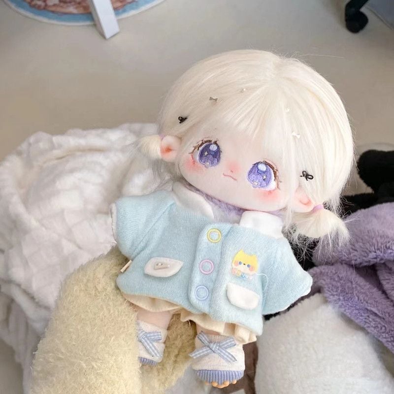 20CM 着せ替えぬいぐるみ 無属性 着せ替え人形 コットンドール 綿人形 喃喃 白髪と紫の瞳女の子 cotton doll