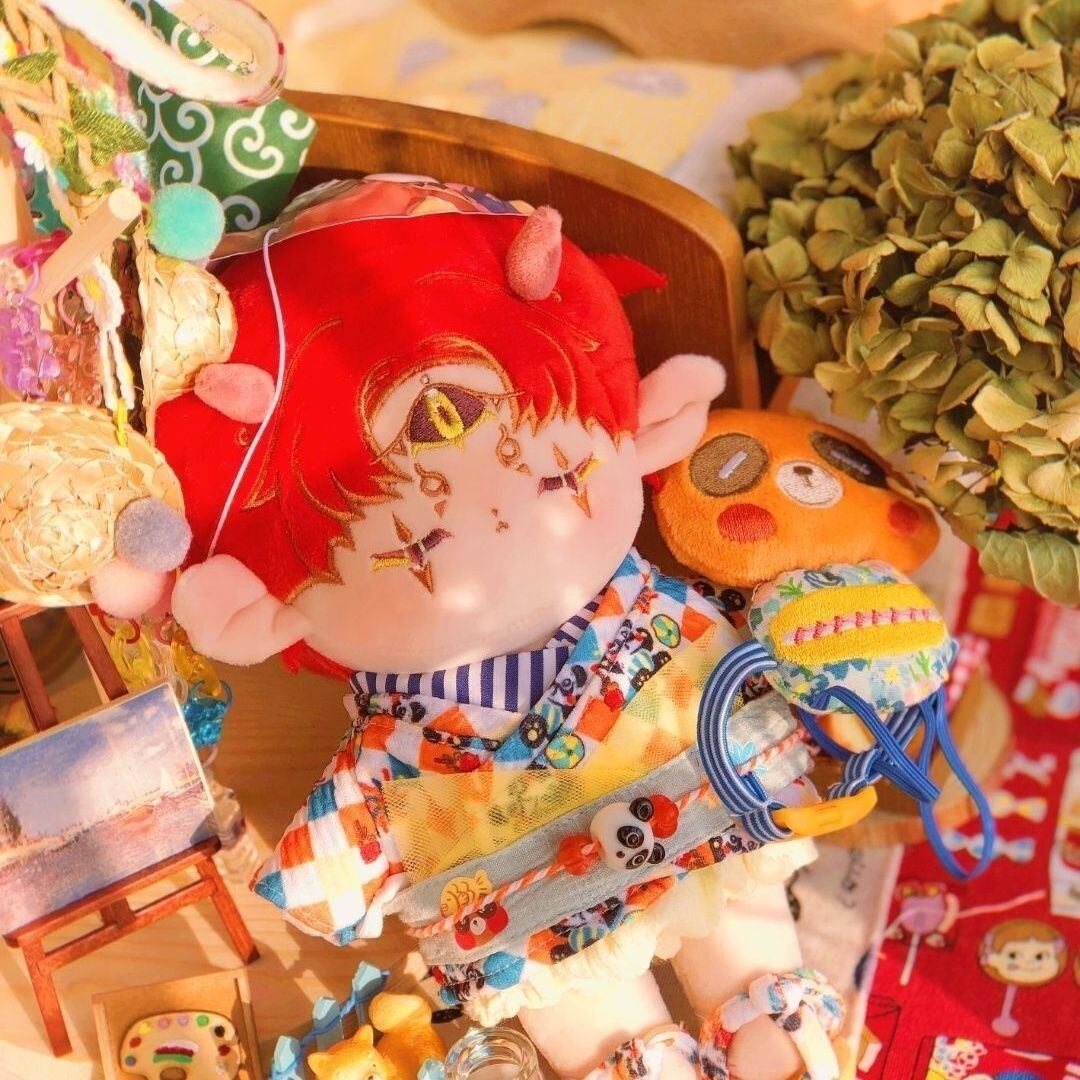 20cm 着せ替えぬいぐるみ 無属性 着せ替え人形 コットンドール 綿人形 三つ目赤毛緑の髪と赤い目男の子 cotton doll