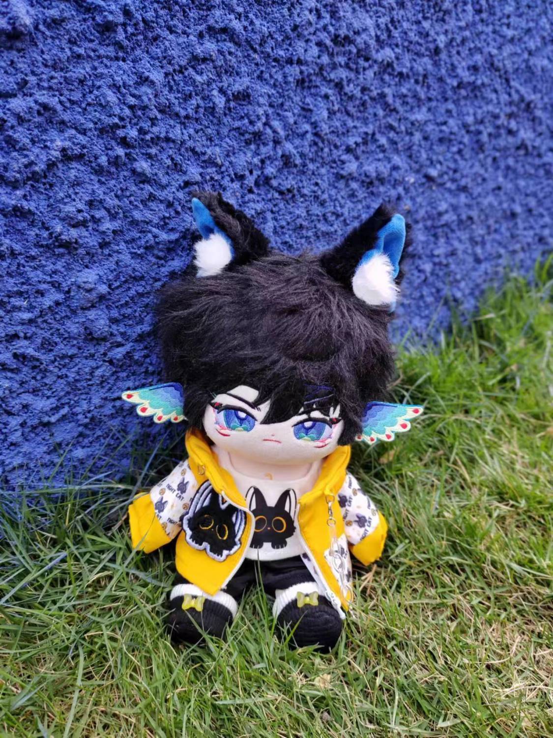 20cm 着せ替えぬいぐるみ 無属性 着せ替え人形 コットンドール 綿人形 黒髪オオカミ耳青い目獣耳付け男の子 錦織 cotton doll
