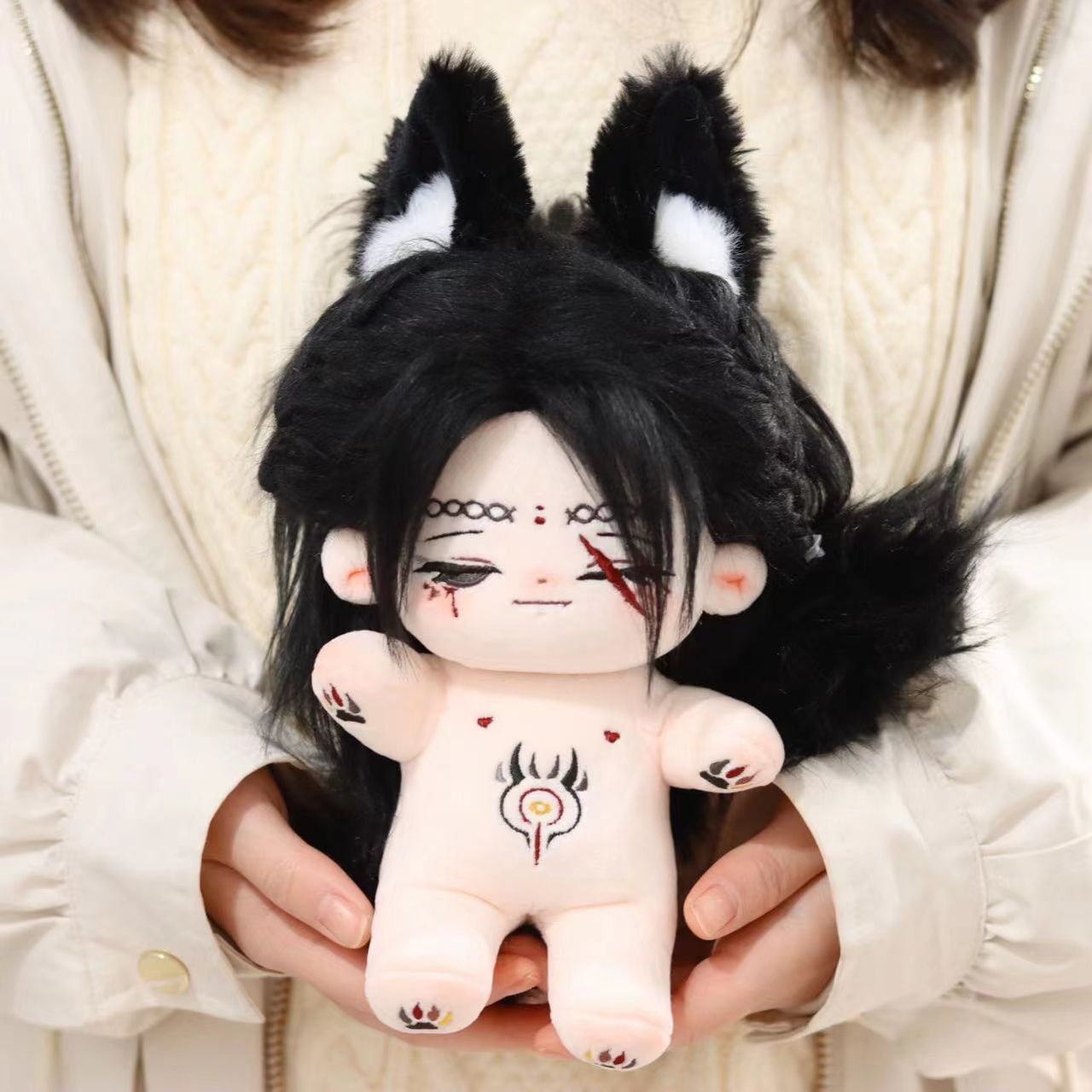 傷ついた目 無属性 ぬいぐるみ 20cm 着せ替えぬいぐるみ 着せ替え人形 綿人形 コットンドール 黒髪黒い瞳獣耳付け男の子