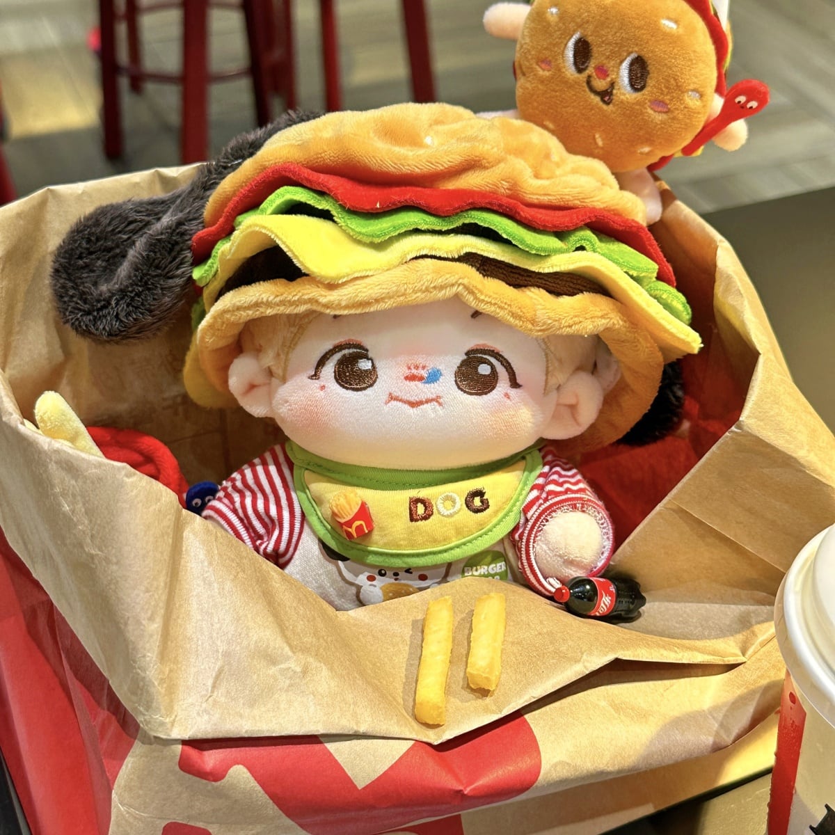 4点セットミニ洋服 20cm 着せ替えぬいぐる服 バーガードッグセットぬいぐるみコスチューム 着せ替え人形洋服 日常服人形 綿人形衣装 ドールウェア アクセサリー