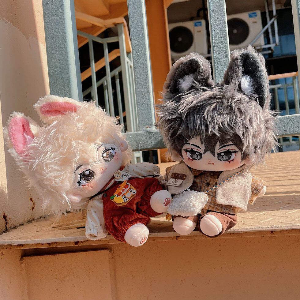 20cm 無属性 ぬいぐるみ 着せ替えぬいぐるみ 白米米 黒米米 男の子 獣耳付け綿人形 コットンドール キャラクターぬいぐるみ
