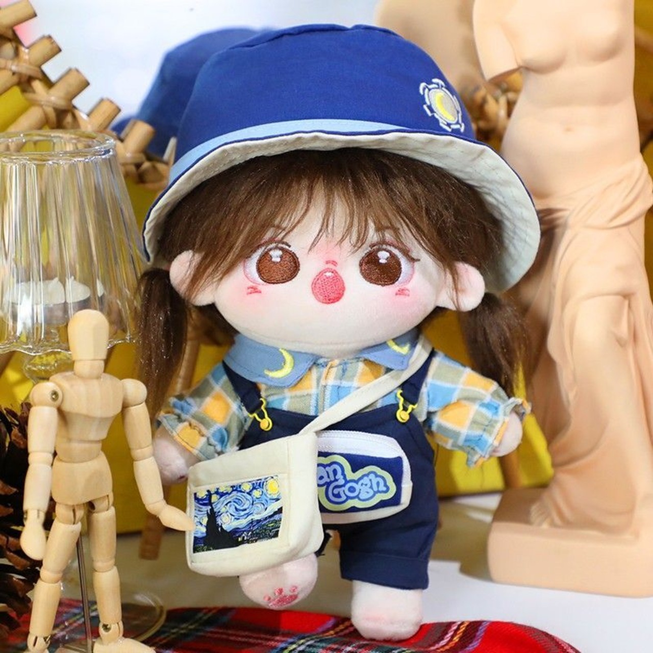 4点セットミニ洋服星月夜20cm 着せ替えぬいぐる服 帽子 ショルダーバッグ シャツ オーバーオール ぬいぐるみ用服コスチューム 着せ替え人形洋服 日常服人形 綿人形衣装 ドールウェア アクセサリー