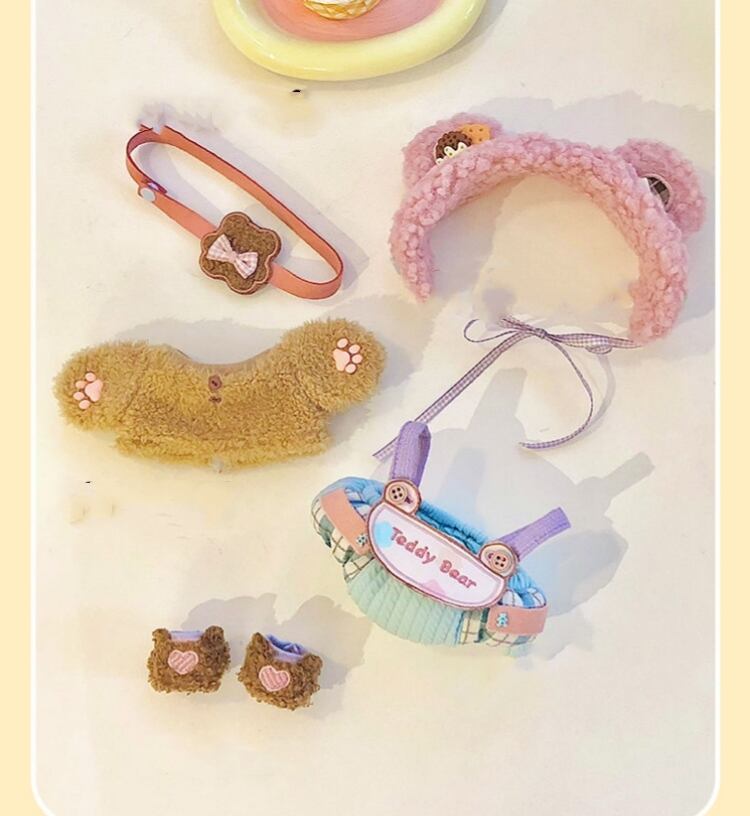 秋冬5点セット ミニ洋服 20cm 着せ替えぬいぐる服 クマ ヘッドバンド バッグ ジャケット オーバーオール 靴 ぬいぐるみ用服コスチューム 着せ替え人形洋服 ールウェア アクセサリー
