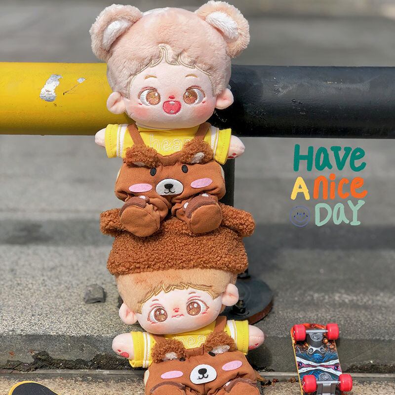 4点セット ミニ洋服 20cm 着せ替えぬいぐる服 クマ オーバーオール 帽子 Tシャツ 靴 ぬいぐるみ用服コスチューム 着せ替え人形洋服 日常服人形 綿人形衣装 ドールウェア アクセサリー