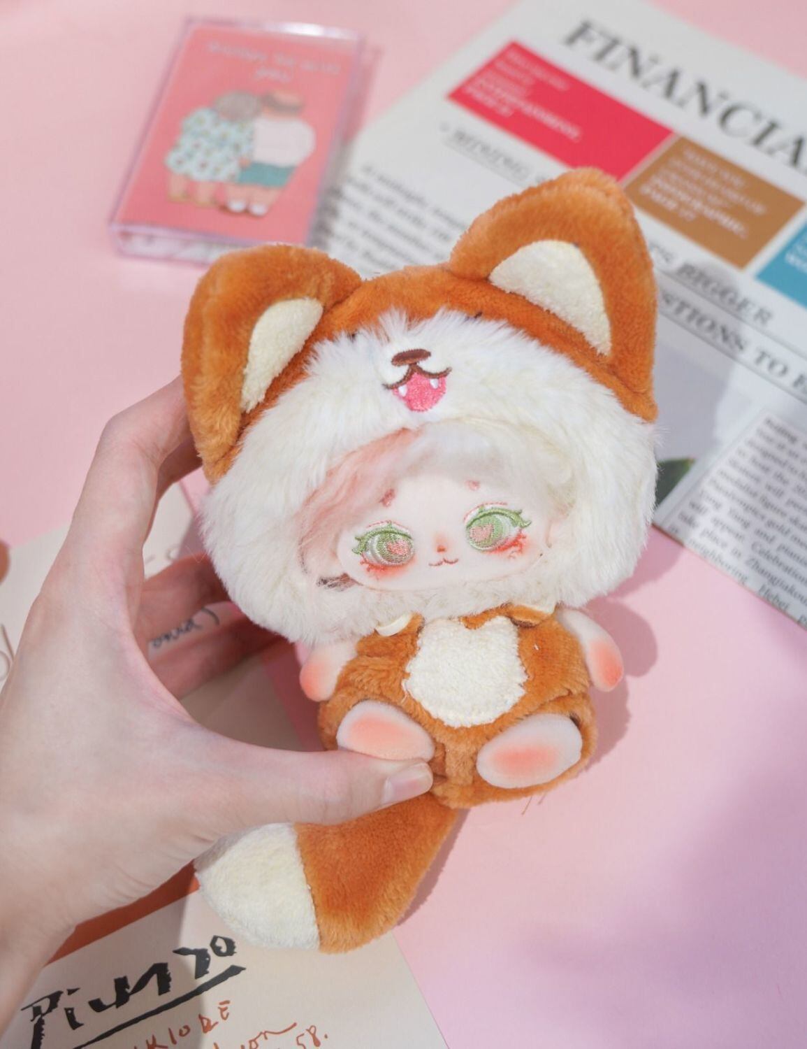 3点セット 10cm 着せ替えぬいぐる服 ぬいぐるみ用ショルダーバッグ 着せ替え人形洋服 日常服人形ミニ洋服 綿人形衣装 ドールウェア アクセサリー オレンジキツネオーバーオール