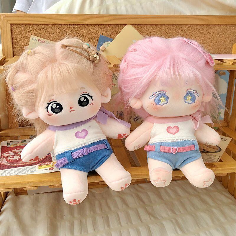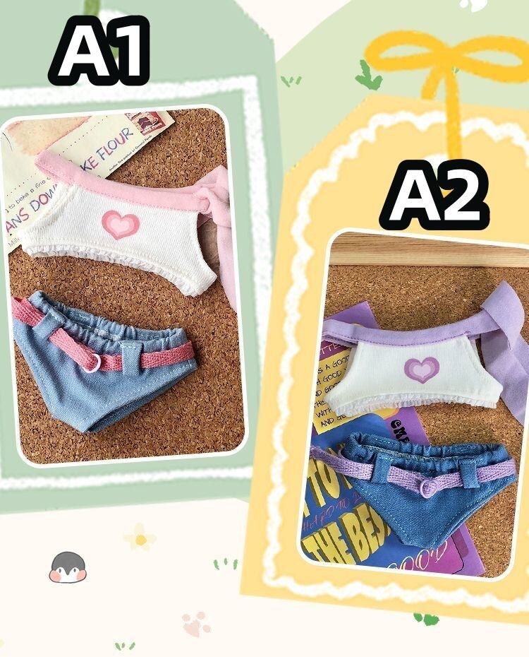 2点セット 20cm 着せ替えぬいぐる服 ぬいぐるみ用服コスチューム 夏の恋人の衣装 デニムショートパンツ キャミソールトップ 着せ替え人形洋服 日常服人形ミニ洋服 綿人形衣装 ドールウェア アクセサリー