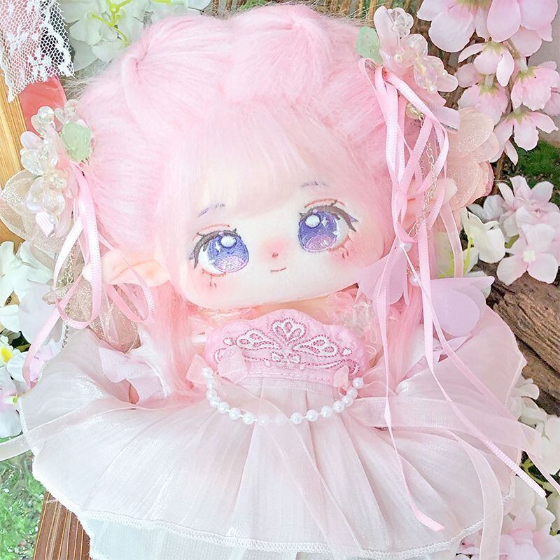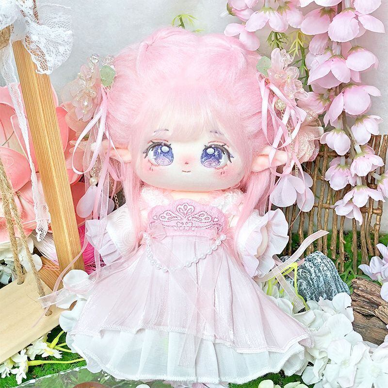 4点セット 20cm 着せ替えぬいぐる服 ぬいぐるみ用服コスチューム 着せ替え人形洋服 日常服人形ミニ洋服 綿人形衣装 ドールウェア アクセサリー 花想容 ピンク古代中国の漢服の女性用スカート