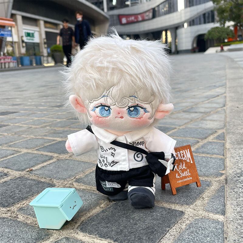 4点セット 20cm 着せ替えぬいぐる服 ぬいぐるみ用服コスチューム 着せ替え人形洋服 日常服人形ミニ洋服 綿人形衣装 ドールウェア アクセサリー 黒と白 クールな羊 シャツ ショートパンツ 靴 ネクタイ