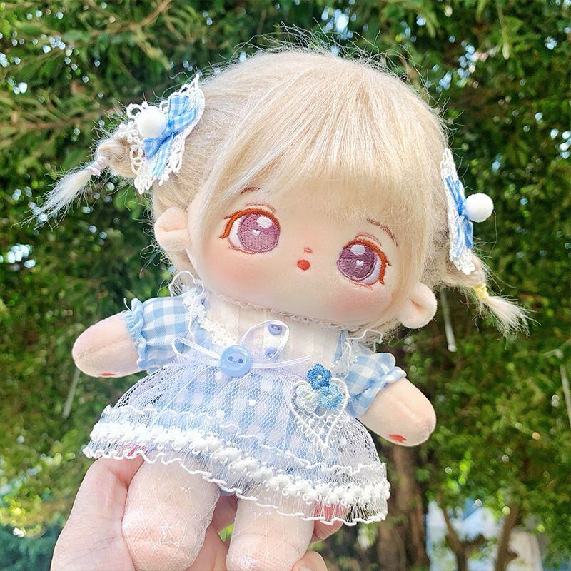 2点セット 20cm 着せ替えぬいぐる服 青いチェック柄のドレス ぬいぐるみ用服コスチューム 着せ替え人形洋服 日常服人形ミニ洋服 綿人形衣装 ドールウェア アクセサリー