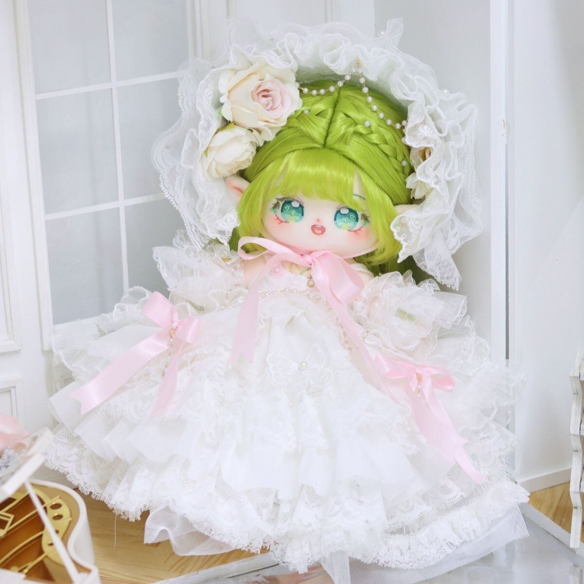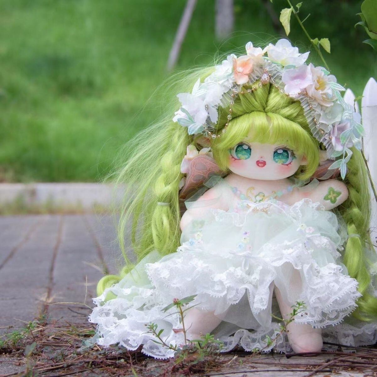 長い脚 30cm 20cm 着せ替えぬいぐるみ 無属性 着せ替え人形 レモングリーンのロングヘア緑の目女の子 綿人形 コットンドール 翡靈 cotton doll