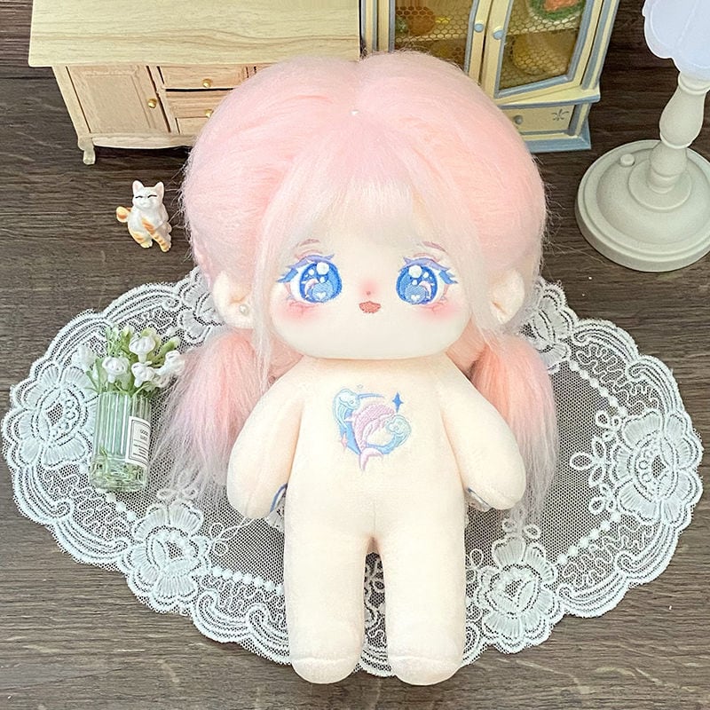 20cm 着せ替えぬいぐるみ 無属性 着せ替え人形 ピンクの髪と青い目女の子 綿人形 コットンドール 心盈 cotton doll
