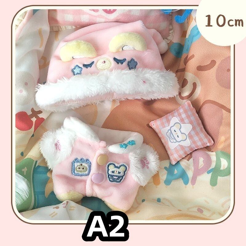 3点セット 10cm 着せ替えぬいぐるみ用服 クマ パジャマ ナイトキャップコスチューム 着せ替え人形洋服 人形服 ミニ洋服 綿人形衣装 ドールウェア アクセサリー