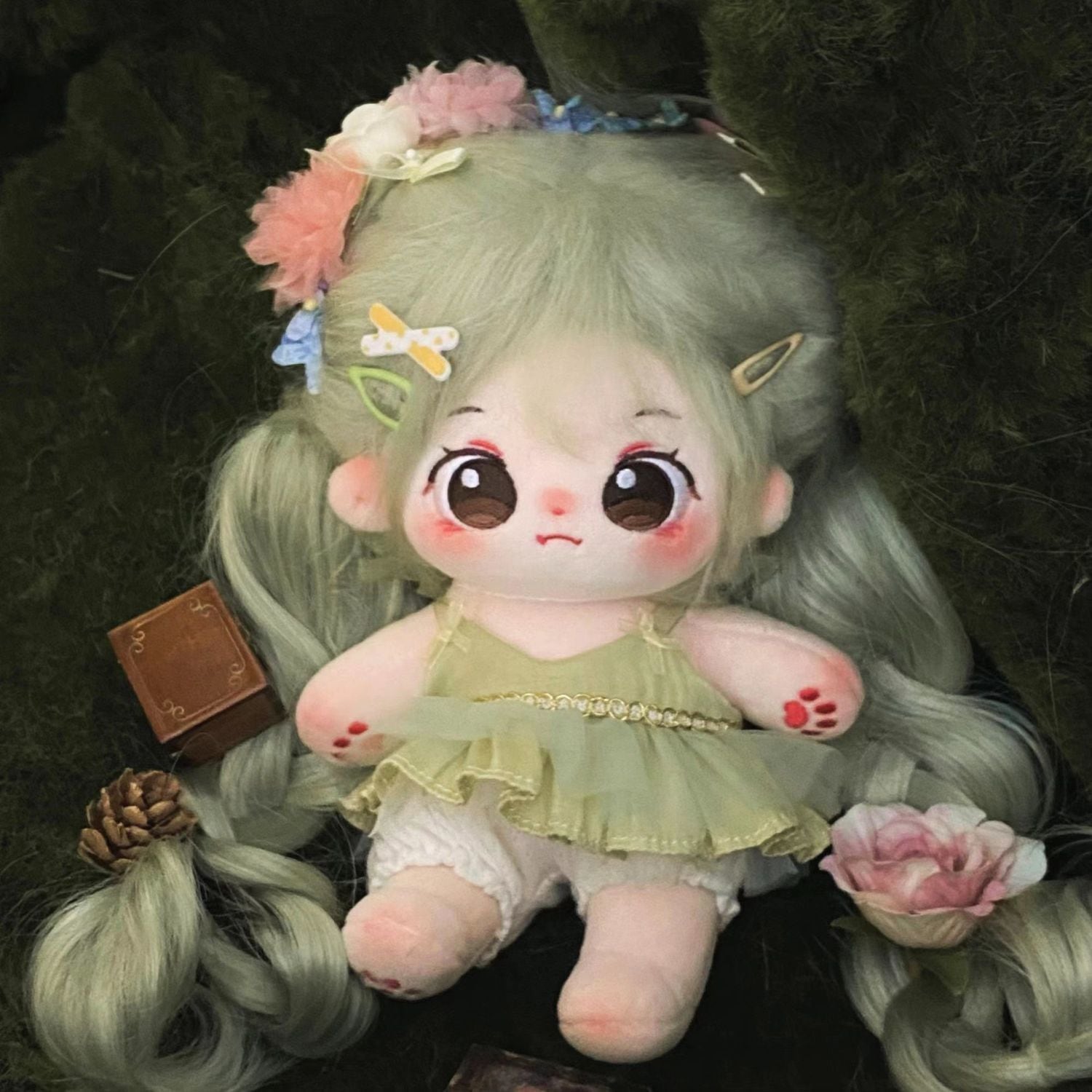 20cm 着せ替えぬいぐるみ 無属性 着せ替え人形 緑の髪と茶色の目女の子 綿人形 コットンドール 妖精 センモ cotton doll