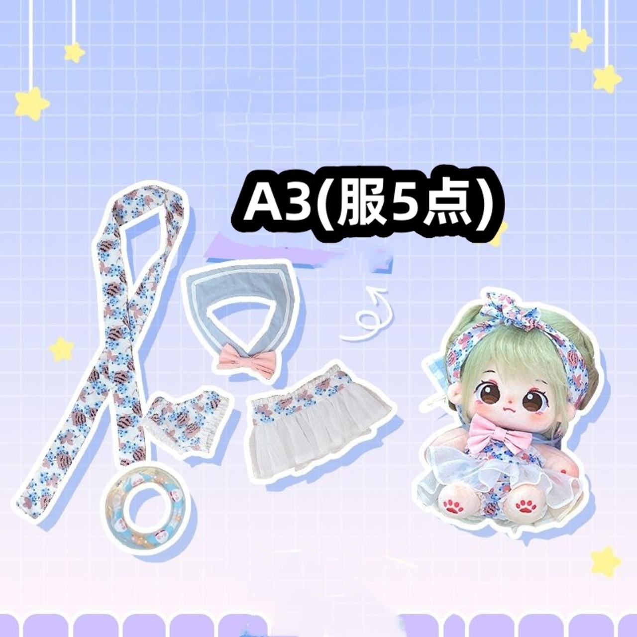 3点セット 20cm 着せ替えぬいぐるみ用服 コスチューム 着せ替え人形洋服 ヘアアクセサリー 下着 スカート 浮き輪