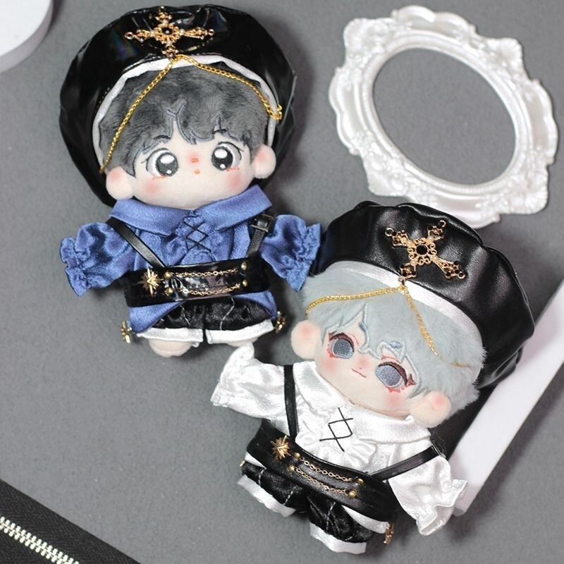 4点セット 10cm 着せ替えぬいぐるみ用服 コスチューム 着せ替え人形洋服 ベレー シャツ ベスト かぼちゃのパンツ アクセサリー
