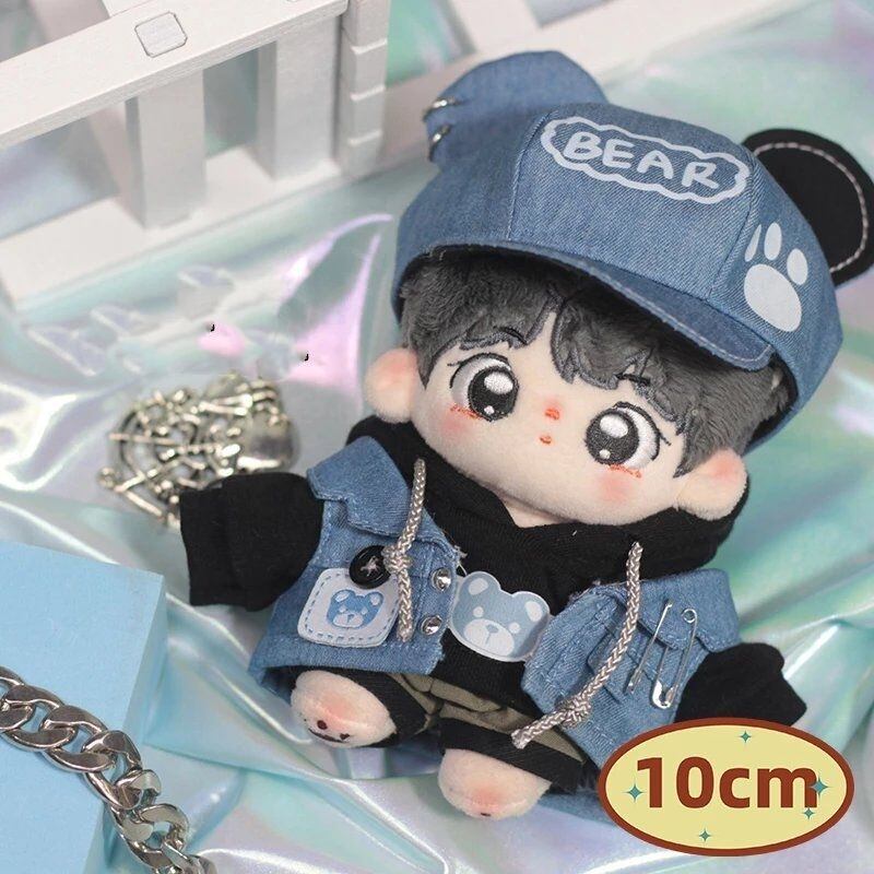 4点セット 10cm 着せ替えぬいぐるみ用服 コスチューム 着せ替え人形洋服 帽子 ベスト トレーナー ショートパンツ デニムスーツ アクセサリー