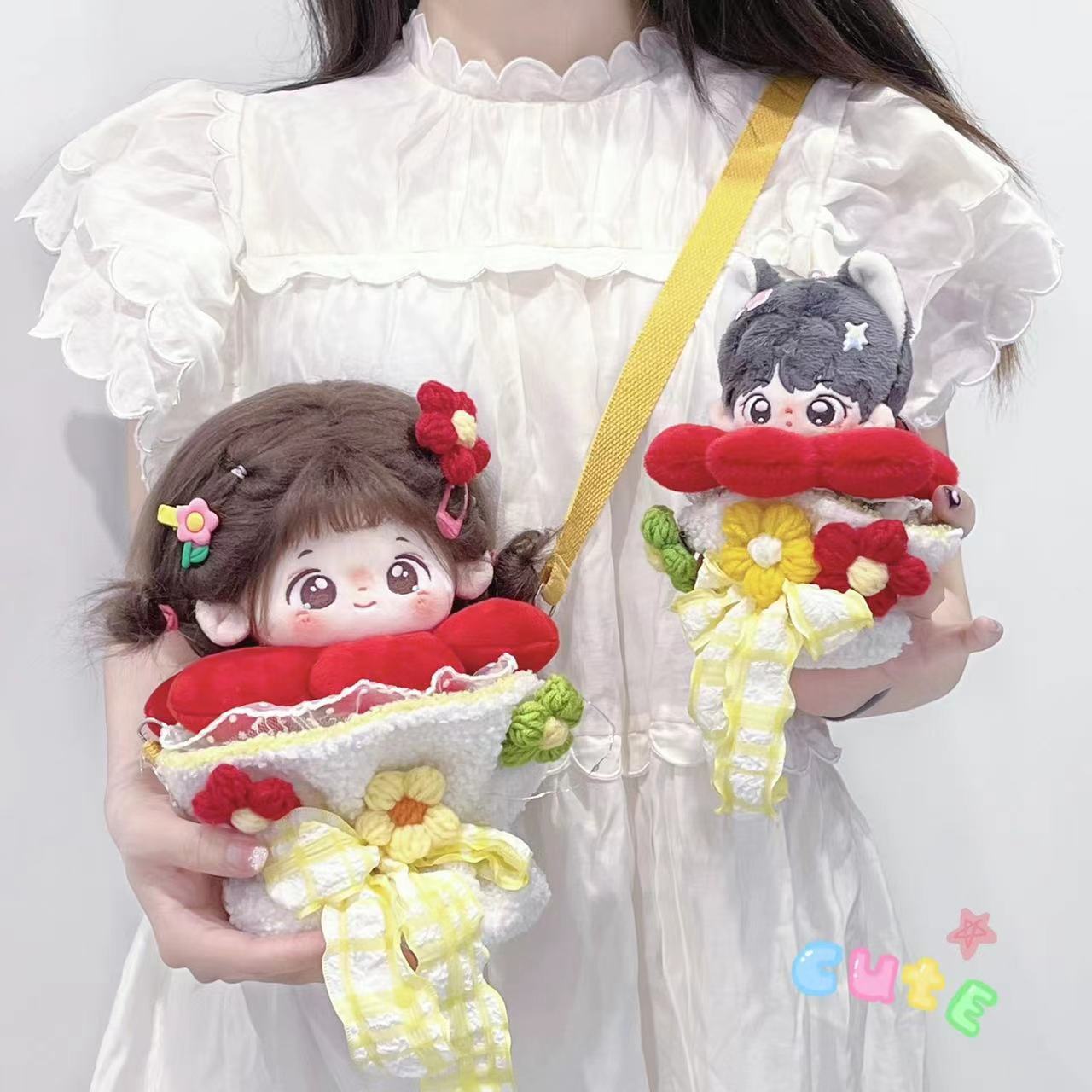 4/5/6セット 20cm 着せ替えぬいぐるみ用服 コスチューム 着せ替え人形洋服 U字型枕 華す レース装飾 吊り革 金属チェーン スカーフ