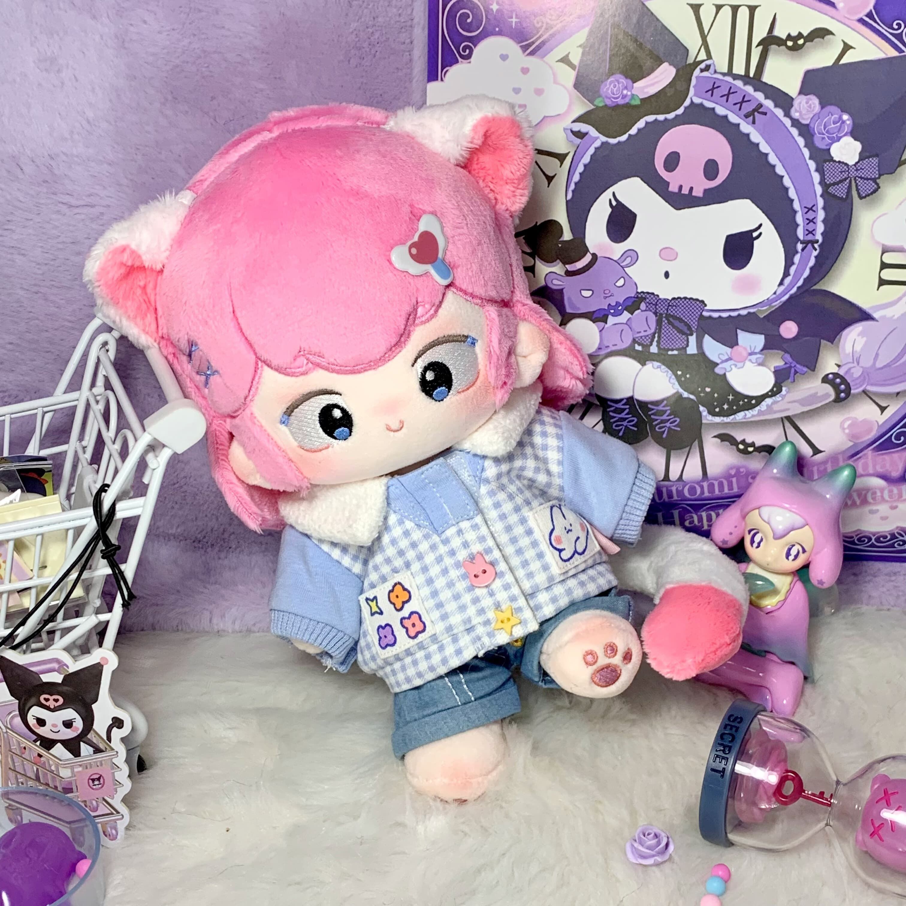 綿人形 20cm 着せ替えぬいぐるみ 無属性 着せ替え人形 ピンクの髪と黒い目女の子 コットンドール 呆呆喵 cotton doll