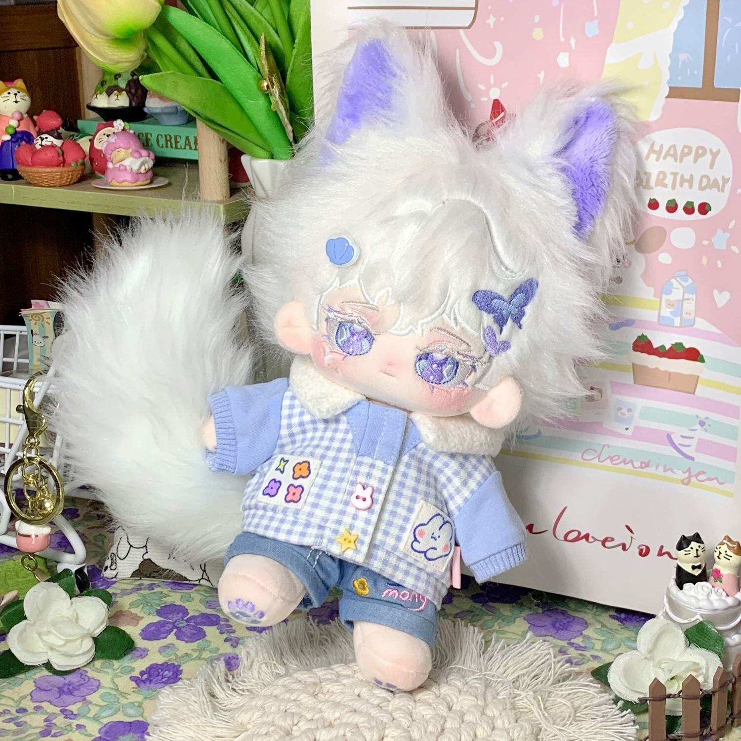 綿人形 20cm 着せ替えぬいぐるみ 無属性 着せ替え人形 白い髪と紫の目女の子 コットンドール 小狐碟 cotton doll