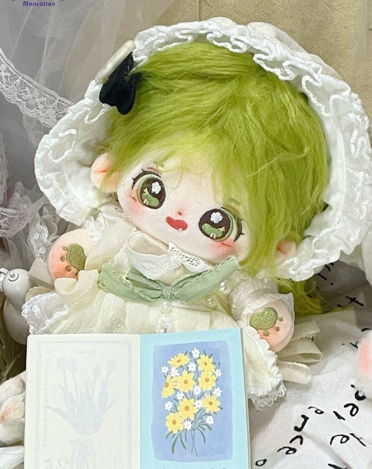 綿人形 20cm 着せ替えぬいぐるみ 無属性 着せ替え人形 レモングリーンの髪レモングリーンの目女の子 コットンドール 綠羅 cotton doll