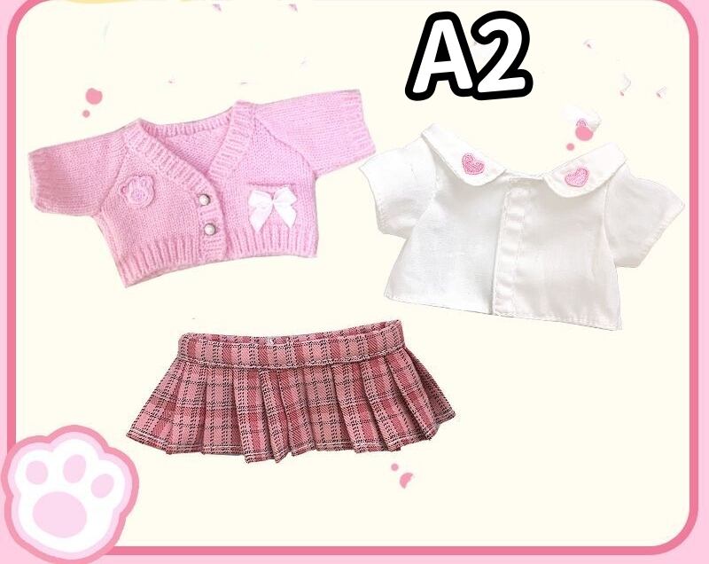 3セット 20cm 着せ替えぬいぐるみ用服 シャツプリーツスカートコスチューム 着せ替え人形洋服 人形服 ミニ洋服 綿人形衣装 ドールウェア アクセサリー