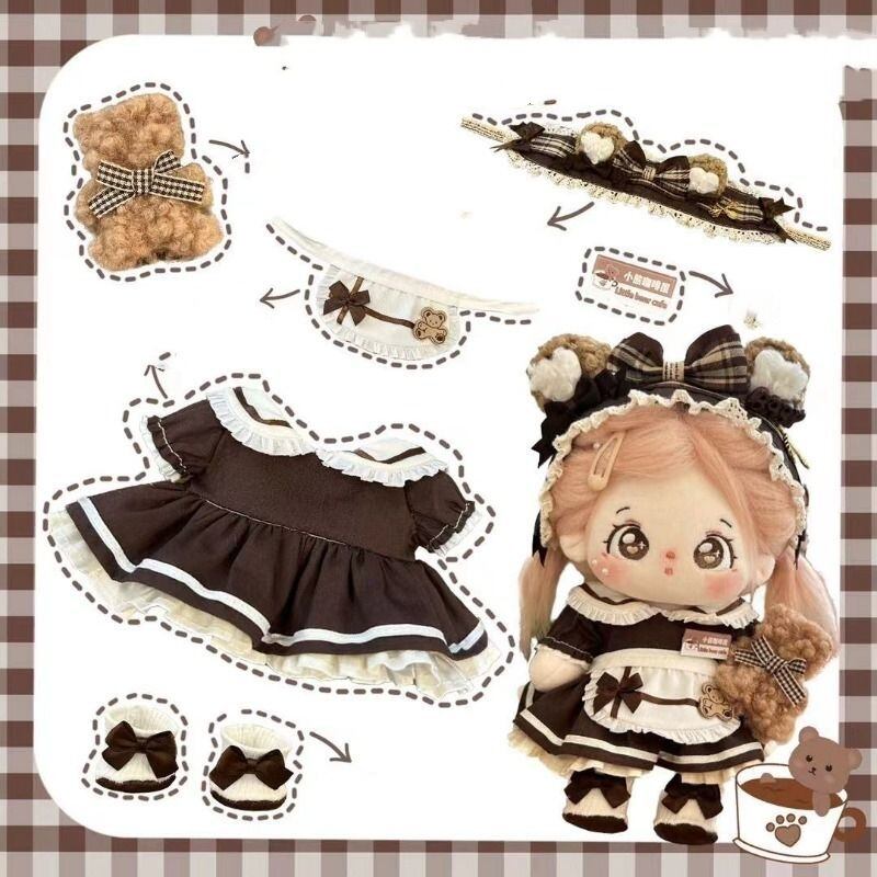 6セット 20cm 着せ替えぬいぐるみ用服 メイド服スーツコスチューム 着せ替え人形洋服 人形服 ミニ洋服 綿人形衣装 ドールウェア アクセサリー