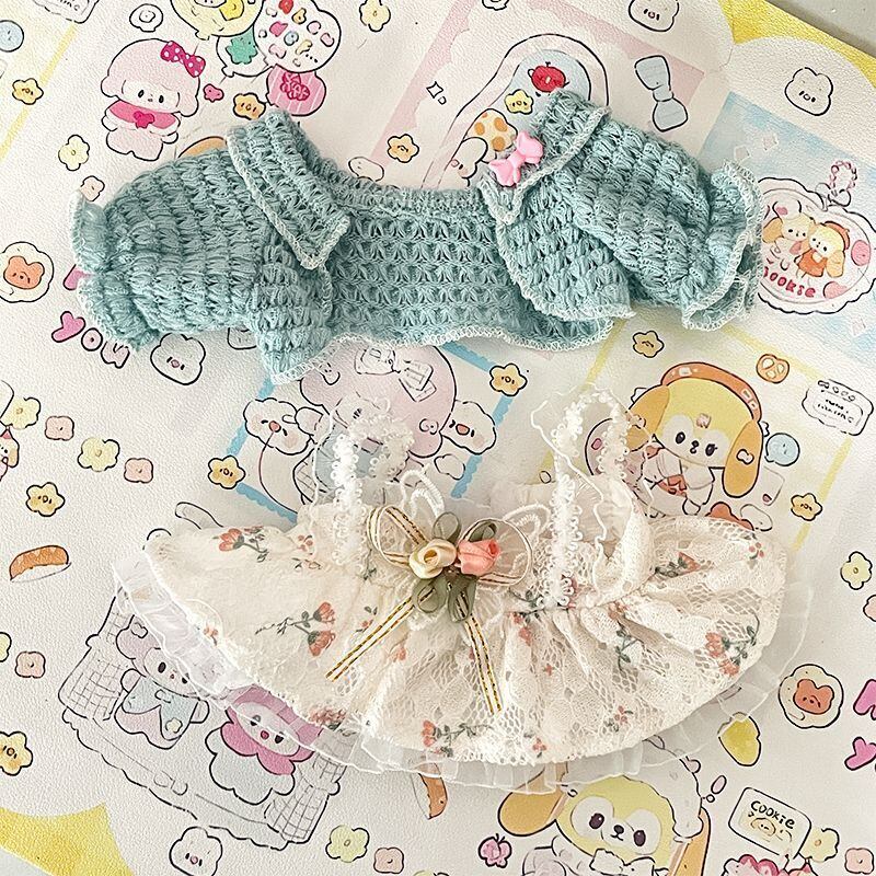 2セット 20cm 着せ替えぬいぐるみ用服 サスペンダードレスコスチューム 着せ替え人形洋服 人形服 ミニ洋服 綿人形衣装 ドールウェア アクセサリー