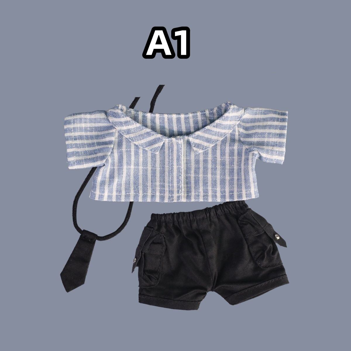 3点セット 20cm 着せ替えぬいぐるみ用服 ジーンズシャツネクタイコスチューム 着せ替え人形洋服 人形服 ミニ洋服 綿人形衣装 ドールウェア アクセサリー
