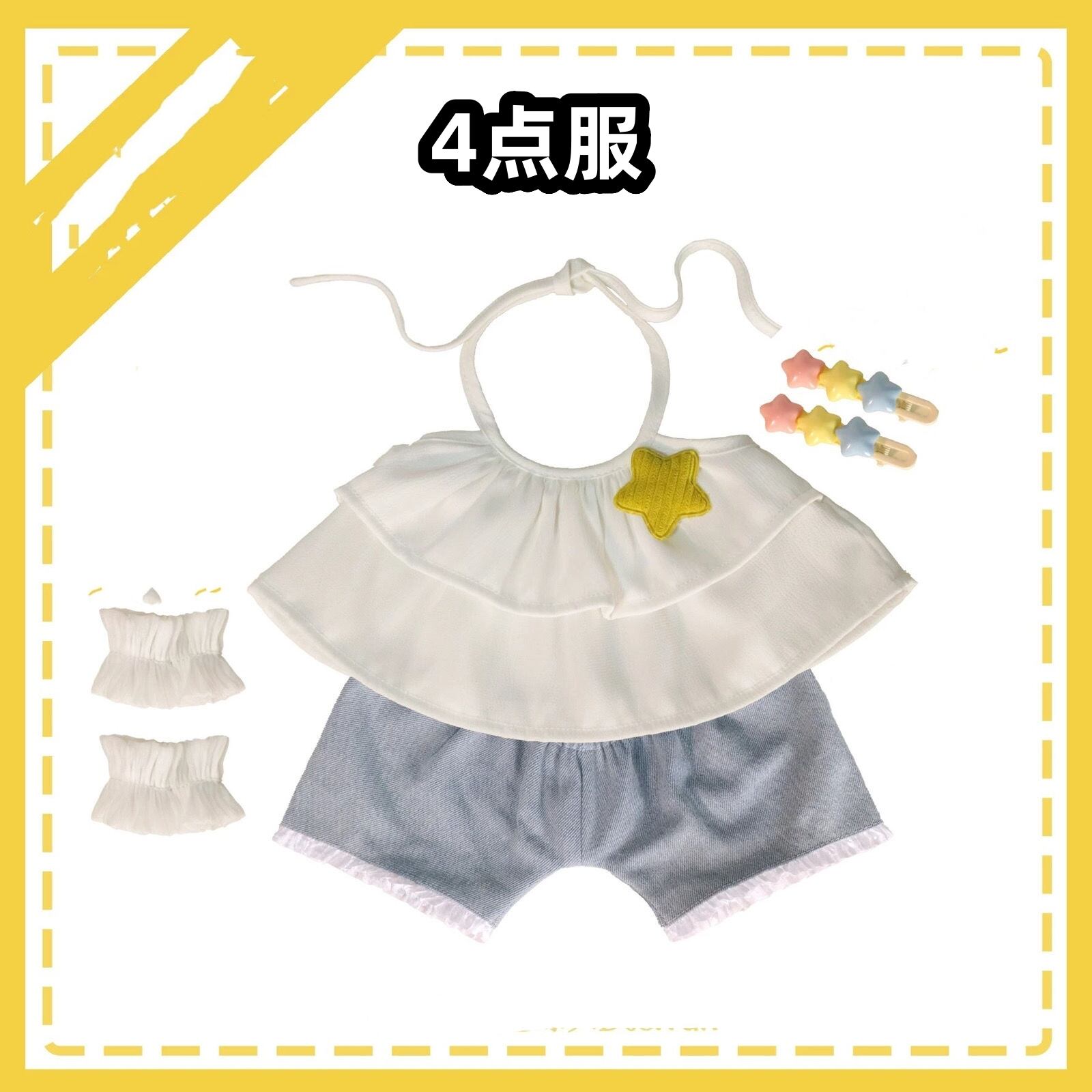4点セット 20cm 着せ替えぬいぐるみ用服 サスペンダースカート ジーンズコスチューム 着せ替え人形洋服 人形服 ミニ洋服 綿人形衣装 ドールウェア アクセサリー