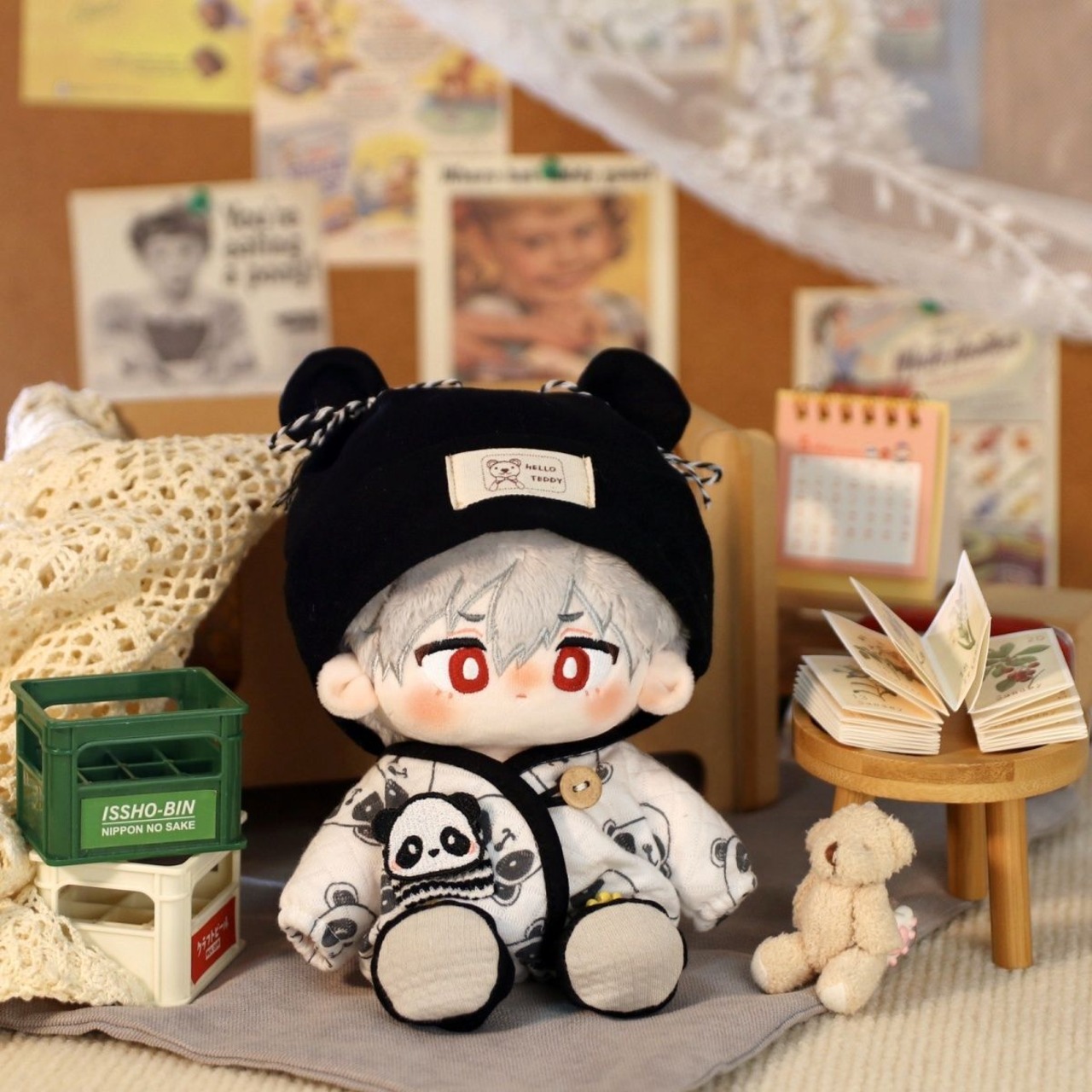 3点セット 20cm 着せ替えぬいぐるみ用服 パンダ ジャンプスーツ 帽子 靴下コスチューム 着せ替え人形洋服 人形服 ミニ洋服 綿人形衣装 ドールウェア アクセサリー