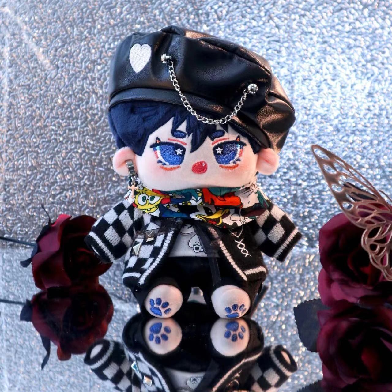 4点セット 20cm 着せ替えぬいぐるみ用服 コスチューム 着せ替え人形洋服 セーター 革の帽子 オーバーオール 三角スカーフ