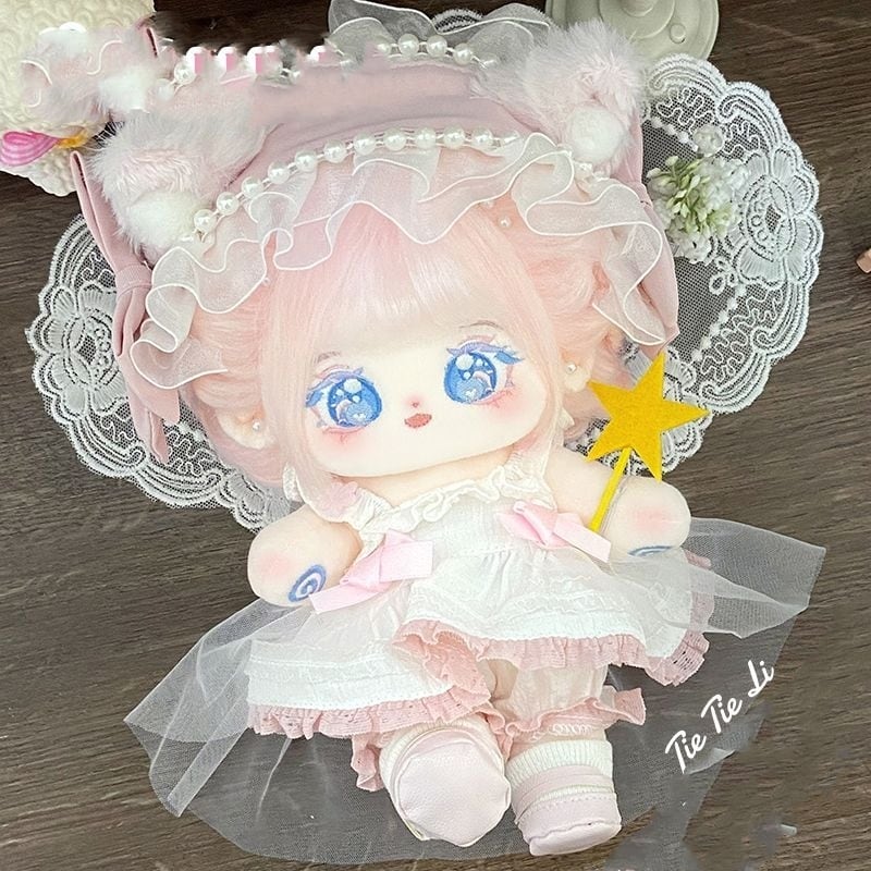 綿人形 20cm 着せ替えぬいぐるみ 無属性 着せ替え人形 青い目ピンクの髪女の子 心盈 コットンドール cotton doll