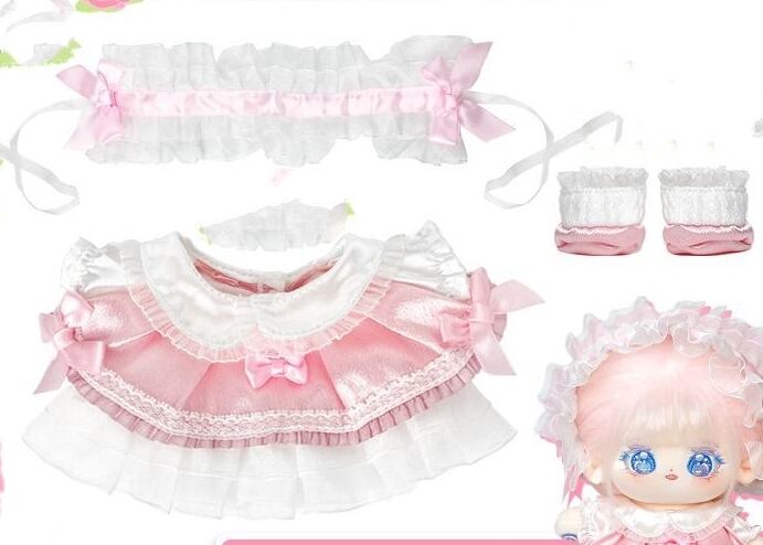 3点セット 20cm 着せ替えぬいぐるみ用服 ピンク ヘアバンド ドレス 靴コスチューム 着せ替え人形洋服 人形服 ミニ洋服 綿人形衣装 ドールウェア アクセサリー